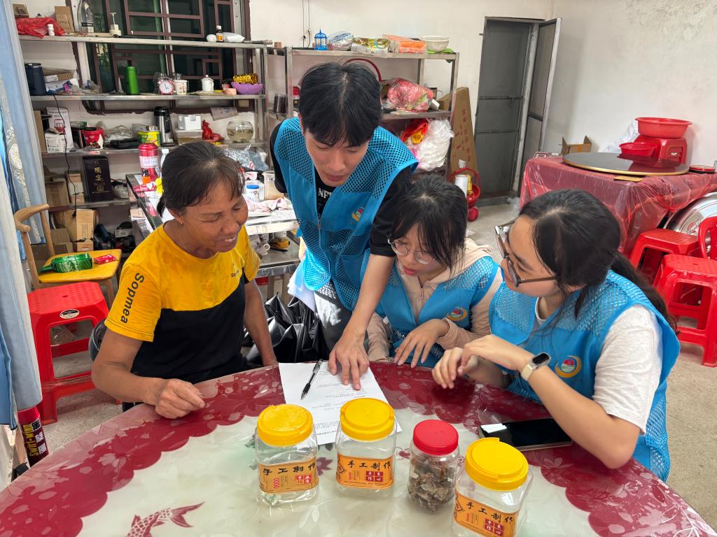 为全面了解新港镇文化建设情况,实践队深入“广东省少数民族特色村寨”双田畲族村,领略畲族文化展馆和明清建筑群,体验“蓝大将军出巡”非遗活动的尚勇精神,挖掘“五味调和”饮食文化中蕴含的养生智慧,以创新融合推动非遗传承;通过与村民面对面交流,了解畲族服饰、传统歌舞、手工艺品以及畲语等文化传承现状与需求后,融合畲族传统元素设计IP人物形象等;通过“客厅党课”,近距离感受抗战老兵、“光荣在党50年”的老党员的滚烫初心和为民情怀,宣传东源县第一代建设者的奋斗史。