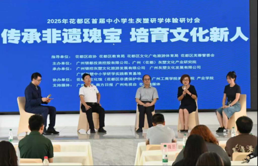 【本网讯】10月17日,花都区首届中小学生灰塑研学体验研讨会在广州灰塑园举行。活动由花都区政协、花都区教育局、花都区文化广电旅游体育局、花都区芙蓉管委会指导,广州(花都)灰塑文化产业研究院主办,广州银控灰塑文化旅游发展有限公司等单位承办。作为活动协办单位,kaiyun开云官方网站美术学院徐浩艇院长、产业学院黄鹏副院长携20余名师生深度参与。此前,学院已携手广州灰塑园于9月23日启幕“笔游四方・彩映万象”艺术展览,通过写生画作、文创设计、皮具设计等学生实践作品,为非遗灰塑的“活态传承”提供可视化实践样本,此次研讨会亦是对展览成果的深化与延伸。学院以产教融合为纽带、以美育浸润为抓手,为非遗灰塑的“活态传承”提供高校方案,彰显新时代高校服务地方文化发展的主动担当。
