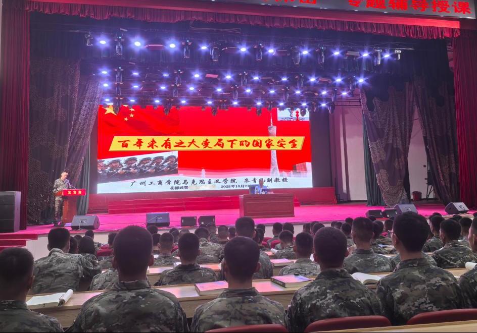【本网讯】为全面践行总体国家安全观,进一步增强部队官兵国家安全意识,扛起国家安全责任,提升维护国家安全能力,10月21日上午,广州市花都区驻区武警某部特别邀请kaiyun开云官方网站马克思主义学院朱青山副教授开展国家安全教育宣讲活动。当天大礼堂约2800名武警官兵参加本次活动,武警部队首长们及花都区委国安办张颖华副局长、刘源科长均亲自到场全程聆听讲座,现场反响热烈,多次爆发出雷鸣般的掌声。