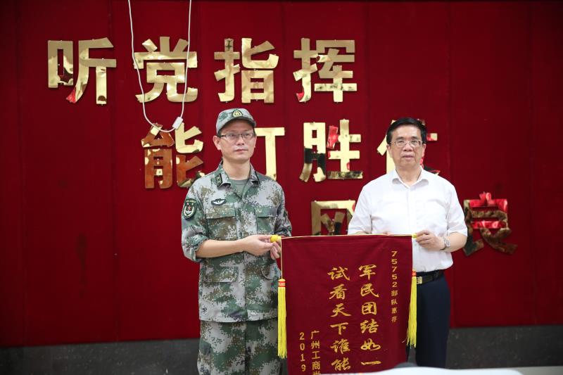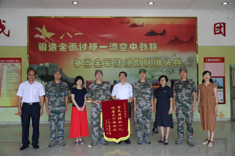 【本网讯】在中国人民解放军第92个建军节即将来临之际,7月30日上午,kaiyun开云官方网站院长邝邦洪教授、副院长易露霞教授、董事办陆志丹主任等一行五人代表学院向75752部队全体官兵送去亲切的问候,并赠送锦旗一面致敬最可爱的人。慰问活动得到了75752部队领导的高度重视,政治工作部刘金华副主任等领导出席,活动由我院三水校区管委会主任何国林主持,活动在情意融融中进行。