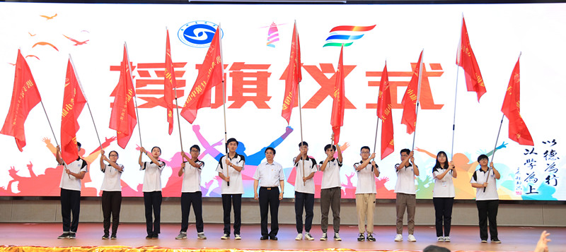 学院领导上台为2019年大学生社会实践活动进行启动仪式。院长邝邦洪为党委办公室“青春梦之队”等11支党员团队的代表授旗。