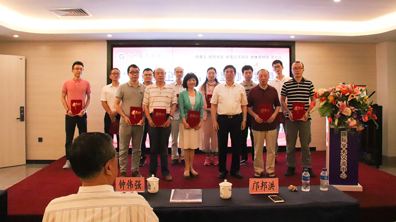 我院邝邦洪院长、广州市汉典装饰工程有限公司邱仙来副总经理和金圣斯集团李春辉总监对在我院校企合作征文中荣获优秀论文奖李明山等的13位老师颁发了荣誉证书和奖品。