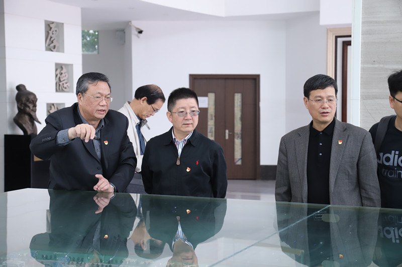 钟伟强书记陪同省教育工委组织处领导和秘书长单位负责人参观办公楼沙盘