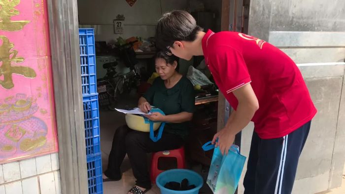 烈日当空,暑气蒸腾,但队员们的热情丝毫不减,扛着米面粮油,沿着蜿蜒的村道开始了“政策送暖”之旅。在村党委委员潘竟聪的带领下队员们走进困难家庭,与留守老人和儿童亲切交谈,细致了解他们的生活状况和子女教育需求。同时实践队员们暖心鼓励学子们坚定信念、勤奋学习,用知识改变命运。