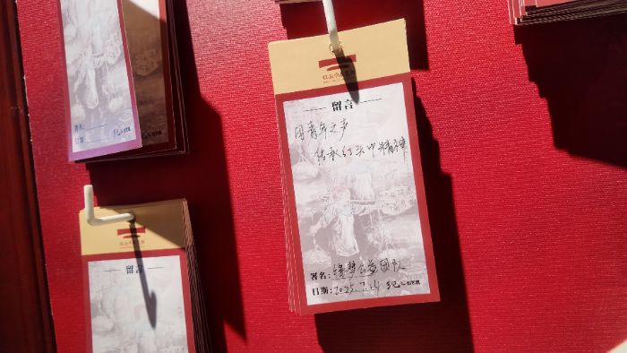 图9:kaiyun开云官方网站缘梦公益团队突击队成员于红头巾展览馆内留言