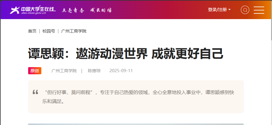 “在求学过程中,我深知只有不断挑战自己,才能取得更好的成绩。因此,我毫不犹豫地参加了各类竞赛。”在备赛过程中,谭思颖时常会为了一个创意或细节熬夜,经历了很多次失败和修改。“然而,正是这些艰苦的过程,让我学会了如何面对挫折,不断调整心态,坚定信念,最终在全国大学生广告艺术大赛中取得了不错的成绩。荣誉的获得,不仅是对我专业能力的肯定,更是对我坚韧不拔精神的鼓励。”