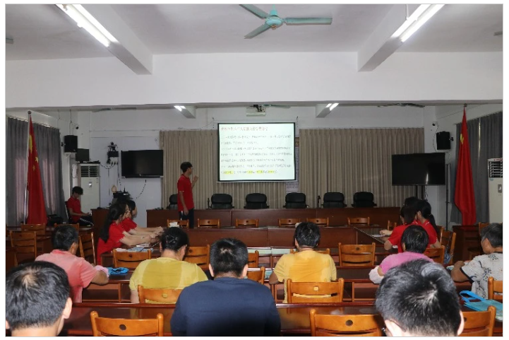 ▲图为筑梦青苗实践队成员在宣讲会上讲解国家资助政策