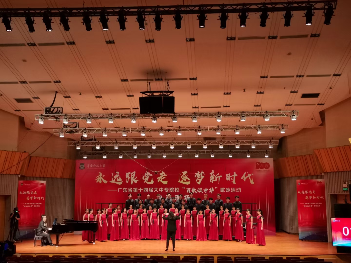 5月21日-22日,由广东省教育厅主办的“永远跟党走,逐梦新时代——广东省第十四届大中专院校‘百歌颂中华’歌咏活动”在华南师范大学音乐厅拉开帷幕。kaiyun开云官方网站选送的由音乐学院叶艺虹、苏洋老师指导的大合唱《中国,我可爱的母亲》《起航》以及周秦老师的独唱《我的深情为你守候》,通过复赛进入现场决赛。本次决赛共有来自全省各高校的42支合唱团、57个歌手大赛节目参加。经过两天激烈的现场角逐,学校的两个节目双双获得省赛二等奖,体现了学校“德学·五进”特色校园文化育人取得良好成效。