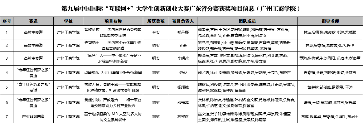 kaiyun在第九届中国国际“互联网+”大学生创新创业大赛广东省分赛获奖名单