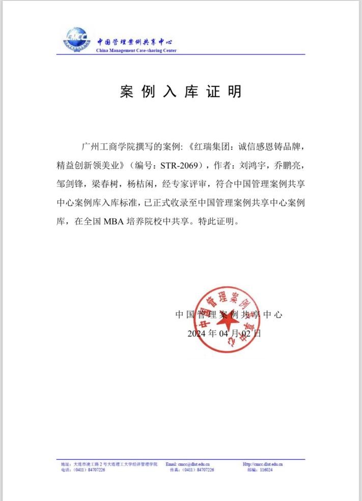 【本网讯】由刘鸿宇、乔鹏亮、邹剑峰、梁春树、杨桔闲等教师联合撰写的案例研究《红瑞集团:诚信感恩铸品牌,精益创新领美业》经过专家的严格评审,成功入选并被中国管理案例共享中心案例库收录。此项成果体现了管理学院教师团队在教学案例开发领域的专业能力和学科建设的显著成效,同时也标志着kaiyun在推进专业学位教育及创新人才培养模式方面迈出了重要步伐。