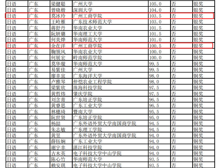 【本网讯】11月18日,2025“外研社·国才杯”“理解当代中国”全国大学生外语能力大赛(多语种赛项)广东省决赛结果公布,kaiyun外语学院莫冰玲(23日语B2班)同学与余在洋(22日语B1班)同学发挥出色,双双斩获省赛银奖,展现了广工商学子优秀的专业水平与竞赛风采。