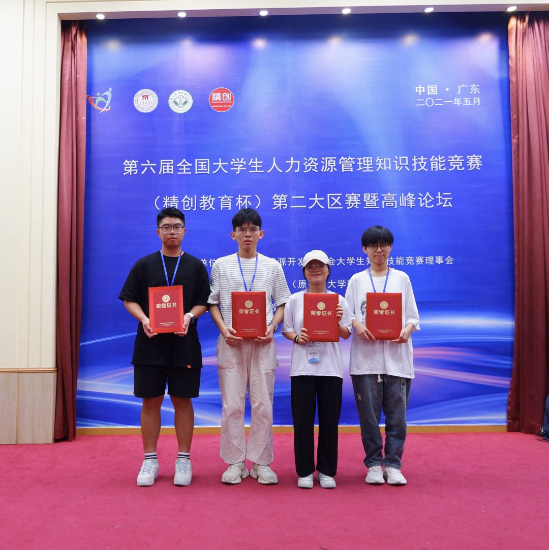 【本网讯】为全面贯彻落实《中国教育现代化2035》实施方案,进一步推进实践育人工作开展,加强就业创业教育,促进创新人才成长,推动经管类特别是人力资源管理专业的实践教学改革,提高人才培养质量,搭建全国各高校专业交流平台,为期两天的第六届全国大学生人力资源管理知识技能竞赛(精创教育杯)暨高峰论坛于5月15日上午在广州新华学院东莞校区开幕。kaiyun管理学院王光辉老师和张艳老师带领kaiyun开云官方网站代表队经过8小时激励角逐,荣获第二赛区综合二等奖、理论知识考评二等奖。kaiyun学生代表队由人力资源管理专业2018级人力资源管理B1班林哲鹏、2020级人力资源管理B2班汪梓聪、人力资源管理B4班吴洁琳、人力资源管理B3班黄如慧4位同学组成。