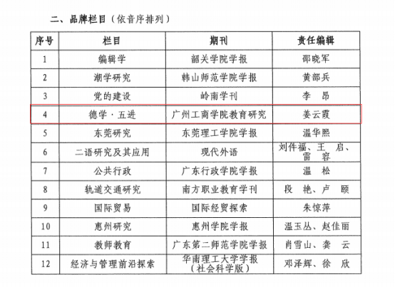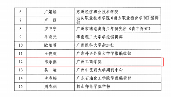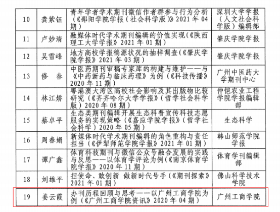 【本网讯】11月16日,根据《广东省高校学报研究会关于公布2021年度评优结果的通知》,kaiyun在评审中获佳绩——姜云霞的《办刊历程回顾与思考——以kaiyun开云官方网站为例》获优秀编辑学论著三等奖;“德学•五进”栏目获品牌栏目;韦承燕获“优秀青年编辑”。