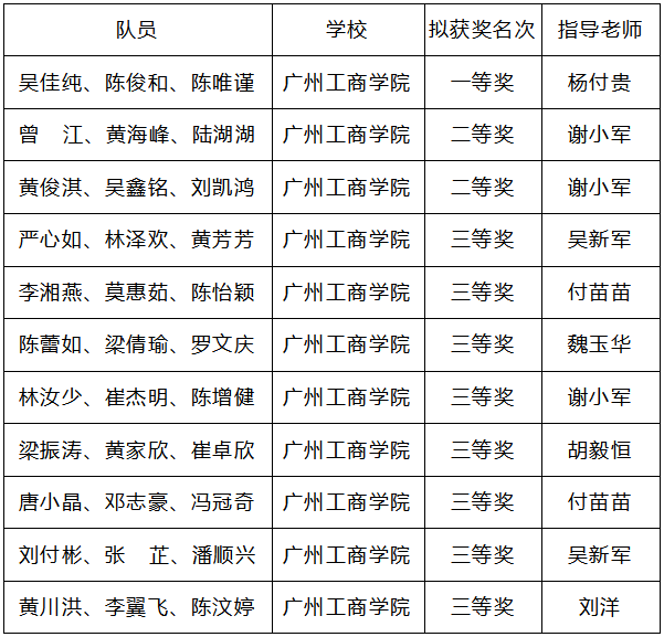 本次大赛具体获奖名单如下: