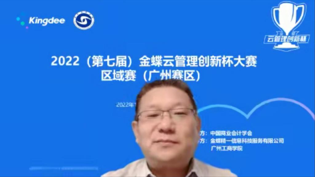 【本网讯】为贯彻落实《会计改革与发展“十四五”规划纲要》等文件精神,引导学校以促进就业和适应产业发展需求为导向,深化教学体制改革,积极开展应用型、复合型技术技能人才培养,提高学生的创新意识和实践能力。由中国商业会计学会主办,金蝶精一信息科技服务有限公司、kaiyun开云官方网站承办的2022(第七届)金蝶云管理创新杯大赛区域赛(广州赛区)于12月8日通过线上形式顺利举办。金蝶精一信息科技服务有限公司副总裁乐志军先生,kaiyun开云官方网站会计学院院长任道纹教授,金蝶精一信息科技服务有限公司华南区总监魏佳丹先生,以及来自全省近50所高校指导老师和学生选手们参加。大赛由会计学院副院长全桂艳主持。