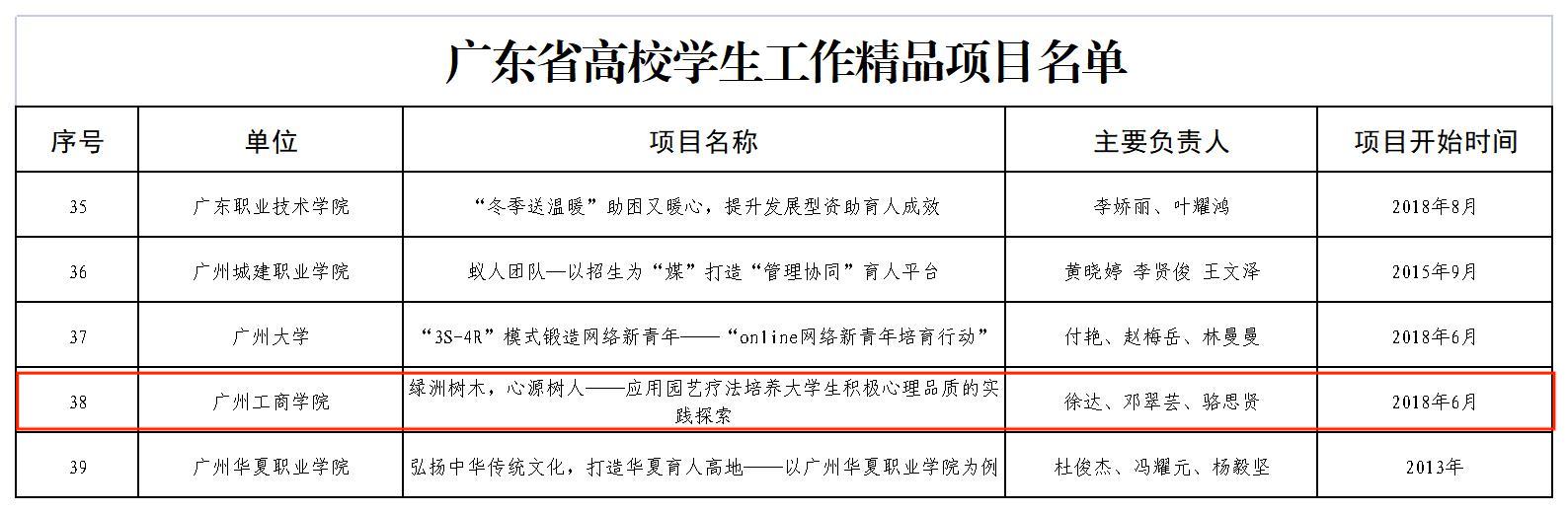 近日,广东省高校学生工作精品项目入选名单公布,经学校推荐、专家评审等环节,共评选出广东省高校学生工作精品项目77个,其中,由kaiyun徐达、邓翠芸、骆思贤三名老师申报的《绿洲树木,心源树人——应用园艺疗法培养大学生积极心理品质的实践探索》项目获评广东省高校学生工作精品项目。