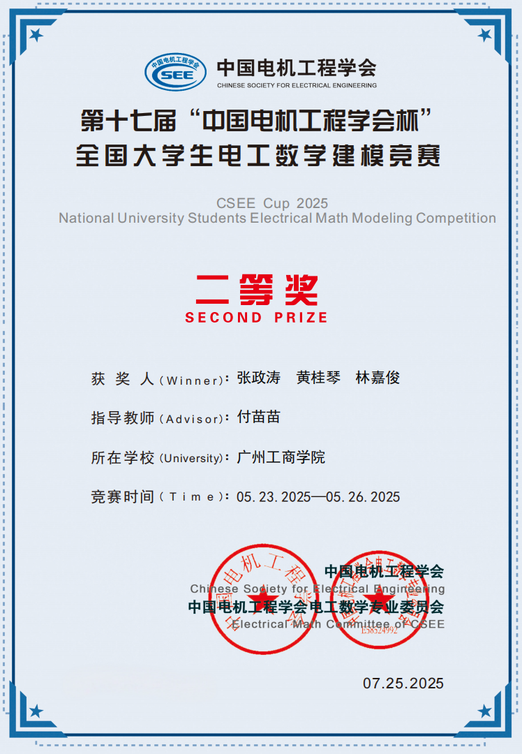 【本网讯】第十七届“中国电机工程学会杯”全国大学生电工数学建模竞赛近日落幕,kaiyun学子凭借扎实的数理基础和创新应用能力,从全国968所高校、1万余支队伍中脱颖而出,斩获二等奖1项,三等奖3项的佳绩。