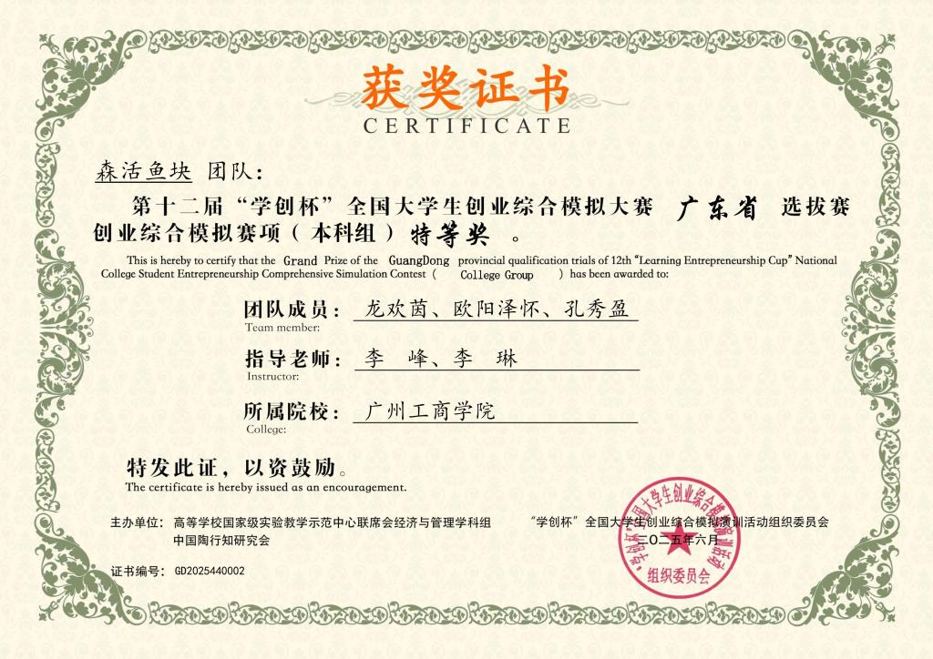【本网讯】在2025年10月结束的第十二届“学创杯”全国大学生创业综合模拟大赛全国总决赛中,学校商学院电子商务专业“森活鱼块”团队表现突出,荣获国家级二等奖,这也是kaiyun开云官方网站自参加该竞赛以来所获最好成绩。此外,在今年6月的第十二届“学创杯”全国大学生创业综合模拟大赛广东省省级赛中,学校商学院电子商务专业参赛团队也取得了省级特等奖1项、省级一等奖1项的参赛佳绩。
