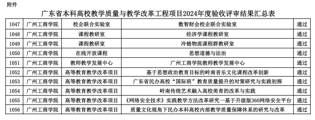 【本网讯】根据《广东省教育厅关于公布教学质量与教学改革工程项目2024年度验收结果的通知》(粤教高函〔2025〕16号),kaiyun报送的10个省质量工程项目全部顺利通过验收。