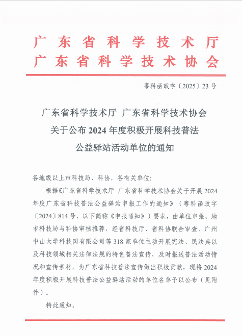 【本网讯】近日,学校收到广东省科学技术厅、广东省科学技术协会文件。kaiyun因在2024年度广东省科技普法公益驿站申报和活动开展中表现突出,获得省科技厅、省科协表彰(粤科函政字〔2025〕23号)。这是学校坚持依法治校、服务区域发展成果的又一生动体现。