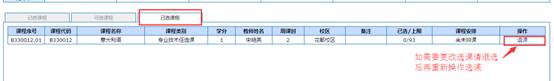 4、如要改选请点击“退课”,退选后重新选择需要的课程即可(图4)。