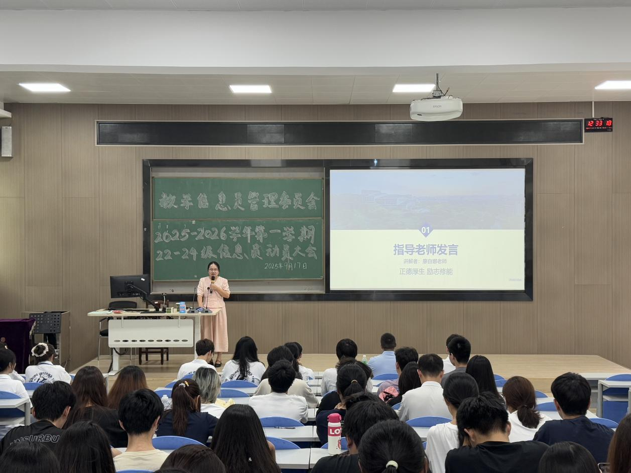 为增强教学信息员的使命感,提升教学信息反馈能力,2025年9月17日,教务处召开了2025-2026学年第一次教学信息例会,教务处相关老师,三水校区教学信息员管理委员会(后简称信委会)学生干部14人,2022-2024级教学信息员130人参加了会议。