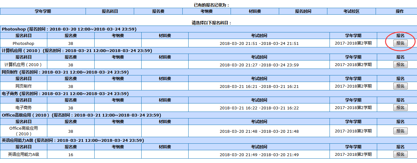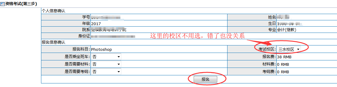 (补充:若报名后想取消某门科目,则在“已有的报名记录”选中那一门,点击“取消报名”即可。)
