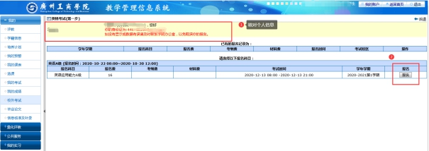 登录教学管理信息系统,网址:http://jw.gzgs.edu.cn 。报名流程:进入我的--校外考试--报名,报考的科目后点击“报名”,确认个人信息“提交”即可。报名流程详见附件1。