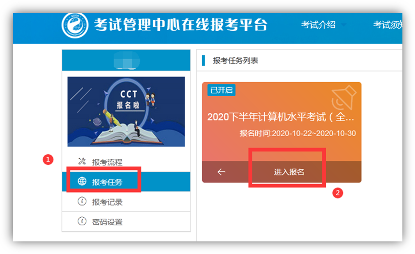 选择需要报考的科目类型(例如:2020年上半年计算机水平考试),点击“进入报名”;