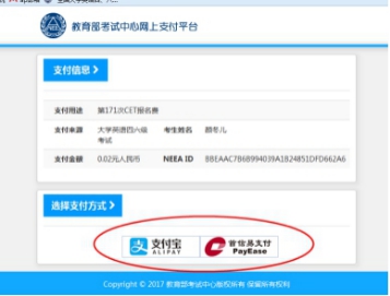 考试报名费支持“支付宝”及“首信易支付”(支持具有网上支付功能的银行卡)两种支付方式。考生在全国统一的报名系统中报名并在规定时间内按要求完成缴费(详细流程见附件),考生报名成功的唯一标识是对应科目的支付状态为“已支付”,未完成缴费视为报名不成功。