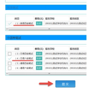 (3)进入报名信息界面: 可看到报名流程的进度,完成笔试或口语报考,可直接在下方进行缴费。
