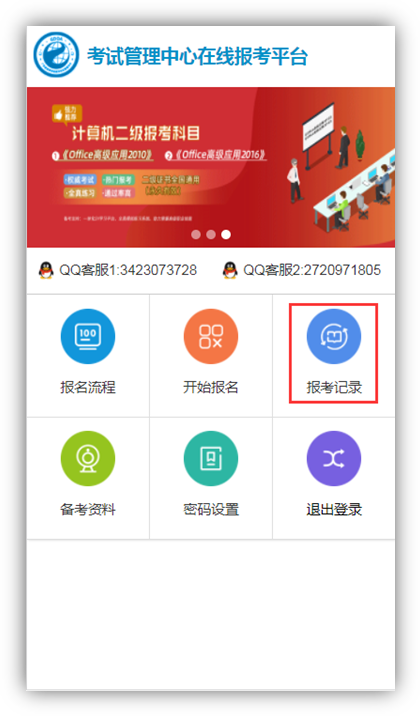报名成功后,进入个人中心,点击“报考记录”,可查看已成功报名的考试科目;