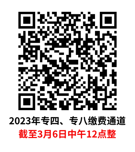 报名、缴费时间延期至2023年3月6日中午12:00,请学院务必通知到未缴费或未确认延考年份学生,逾期不再接受补报!逾期不再接受补报!逾期不再接受补报!