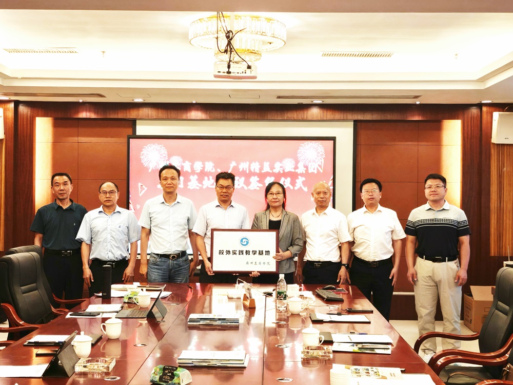 学校与企业签订校企合作协议和实习基地协议。张辉副校长代表学校向广州精益实业集团授予“校外实践教学基地”牌匾。学校领导和老师们还看望了在精益实业集团就业的校友代表。