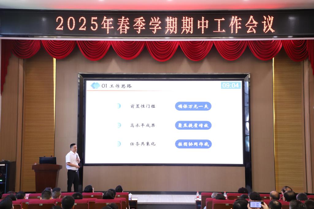 5月15日下午,学校召开2025年春季学期期中工作会议,总结及梳理本学期开学以来的工作,努力开创工作新局面。学校董事会领导出席,全体校领导、全校中层干部参加。会议由学校党委书记主持。