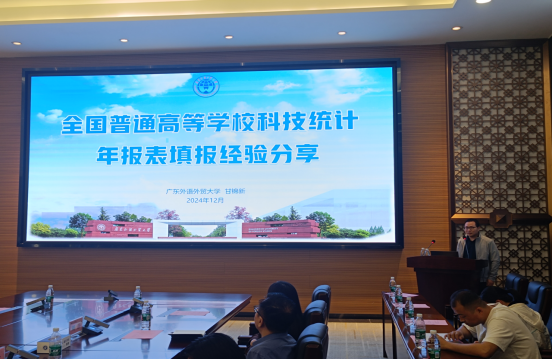 在工作培训环节,甘锦新老师介绍了科技/社科统计事业的历史脉络,及其对国家教育科研事业发展的重要支撑作用,并对往年统计工作中易出现的错误进行了详细讲解。随后,科研处负责统计工作的胡冰玥老师详细讲解了科技/社科统计填报事项、方式,并与参会人员进行现场互动、答疑。