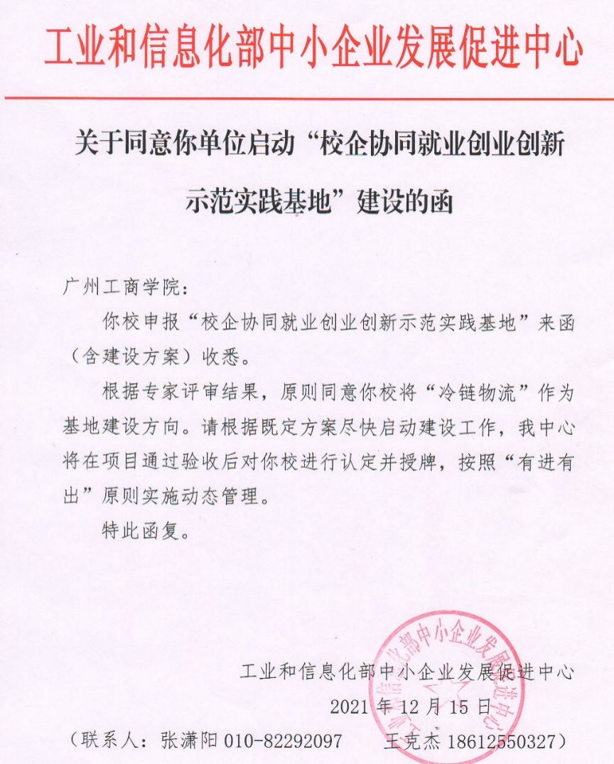 近日,工业和信息化部中小企业发展促进中心同意将学校的“冷链物流”作为校企协同就业创业创新示范实践基地的建设方向。这是kaiyun积极践行学校校长邝邦洪教授提出的“以德为行,以学为上”教育思想、“五进”教育实践活动的又一个重要成果。