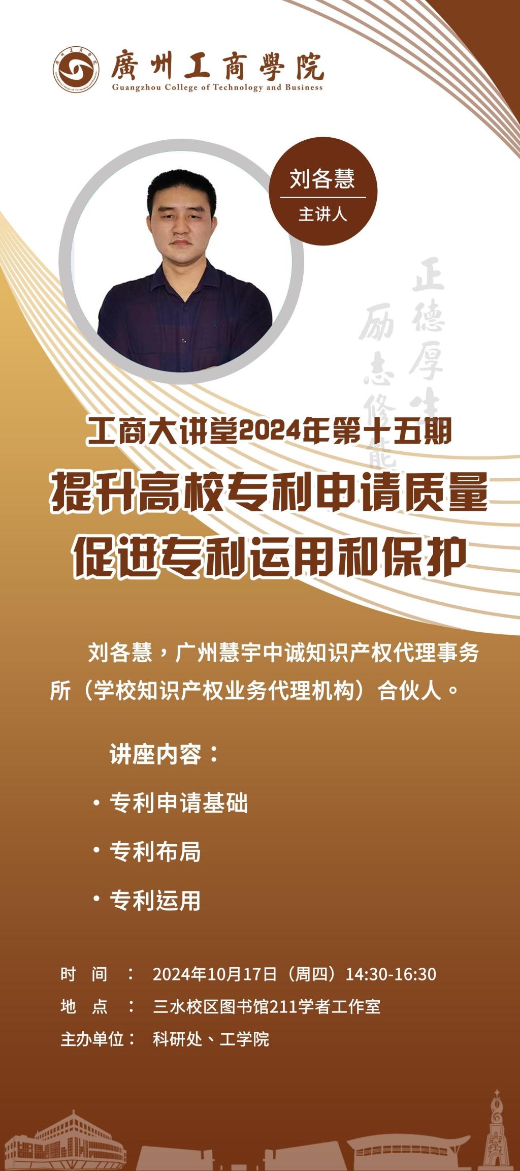 主讲人:刘各慧,广州慧宇中诚知识产权代理事务所(学校知识产权业务代理机构)合伙人。