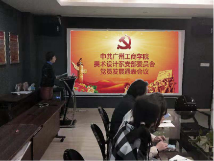 2019年11月28日13时,美术设计系党支部接收预备党员通表大会在美术楼201室顺利举行。党支部书记司晓婧同志、其他两位支部委员、全体支部党员以及拟被通表的三位发展对象出席会议。其中应到正式党员25人,实到21人,请假4人,符合通表大会法定要求,通表结果有效。本次大会由司晓婧主持。