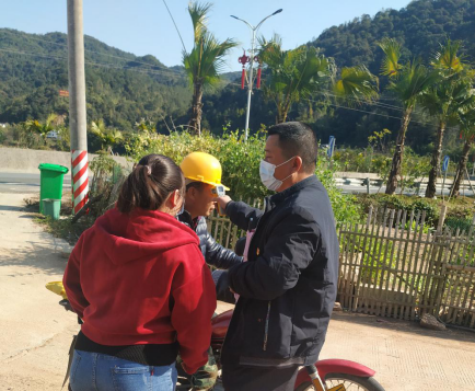 (对入村人员进行体温检测)