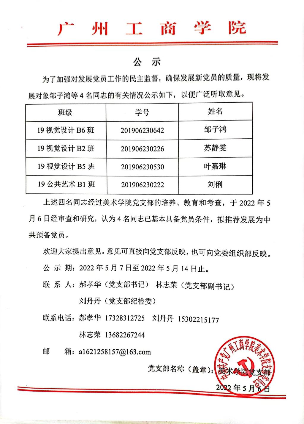 美术学院党支部丨发展对象转预备党员名单公示