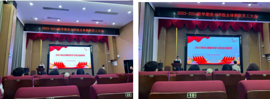 2023年9月4日,美术学院党总支组织开展纪律教育学习月活动,通过理论学习引导党员干部深刻认识“两个确立”定性意义,增强“四个意识”、坚定“四个自信”、做到“两个维护”,增强拒腐防变和抵御风险能力。会议由学院党总支书记邢传国进行主持。