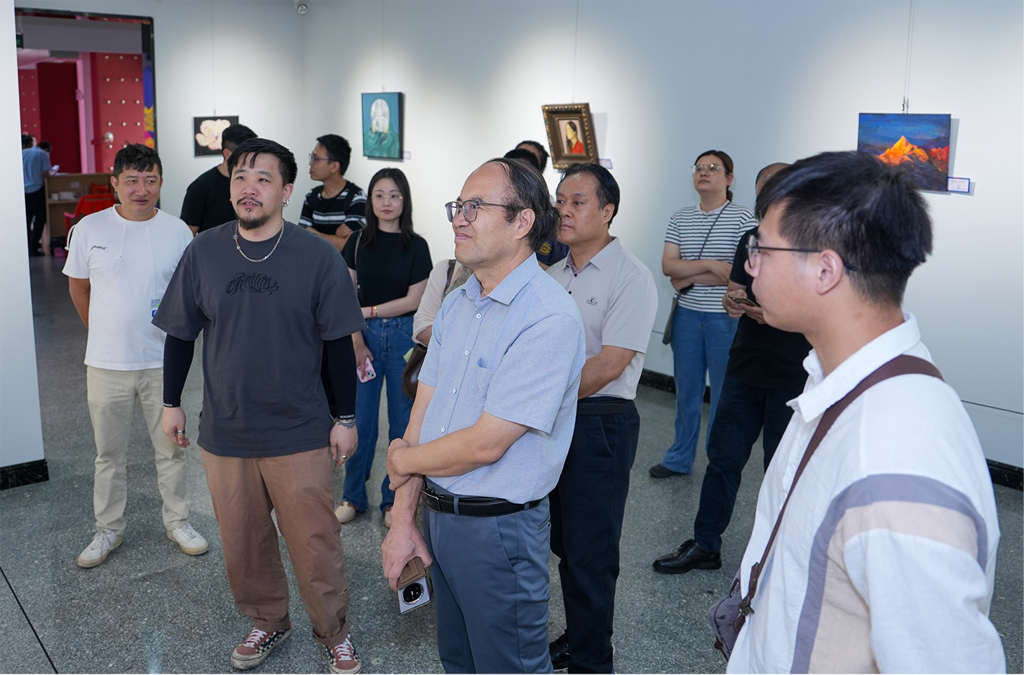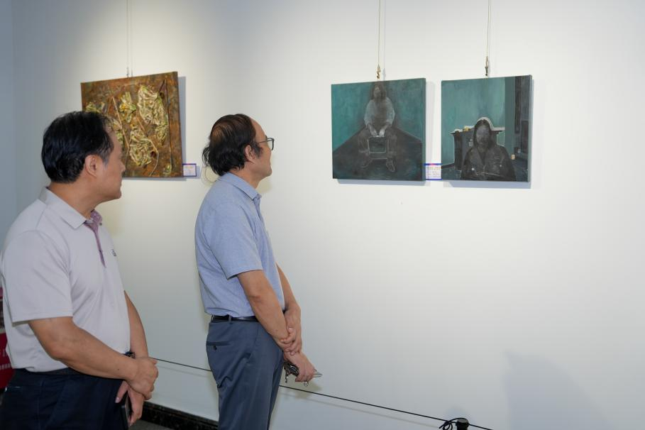 此外,学院领导与参展老师于6月17日前往花都区美术馆进行参观交流,围绕展览作品的创作背景、艺术理念等展开深度探讨,为师生与业界、公众搭建对话平台,推动艺术创作与社会需求的有机衔接。