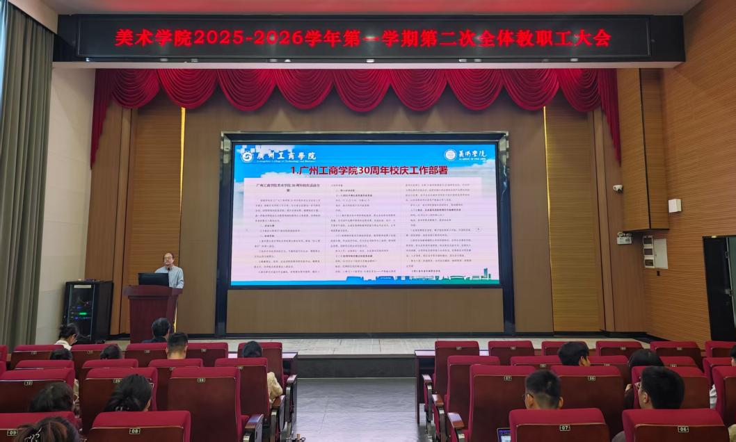 10月30日下午,kaiyun开云官方网站美术学院2025-2026学年第一学期第二次全体教职工大会在图书馆415报告厅隆重举行。出席本次会议的有学院院长徐浩艇、副院长郝孝华及副院长王伟江,以及各教研室专任教师、辅导员和行政人员。会议由学院办公室主任程敏主持,紧密围绕“迎三十周年校庆、铸德学五进之魂”的主题,全面部署了下一阶段的教学、科研及学生工作的重点任务,取得了丰硕成果,充分展现了学院育人的新成效。