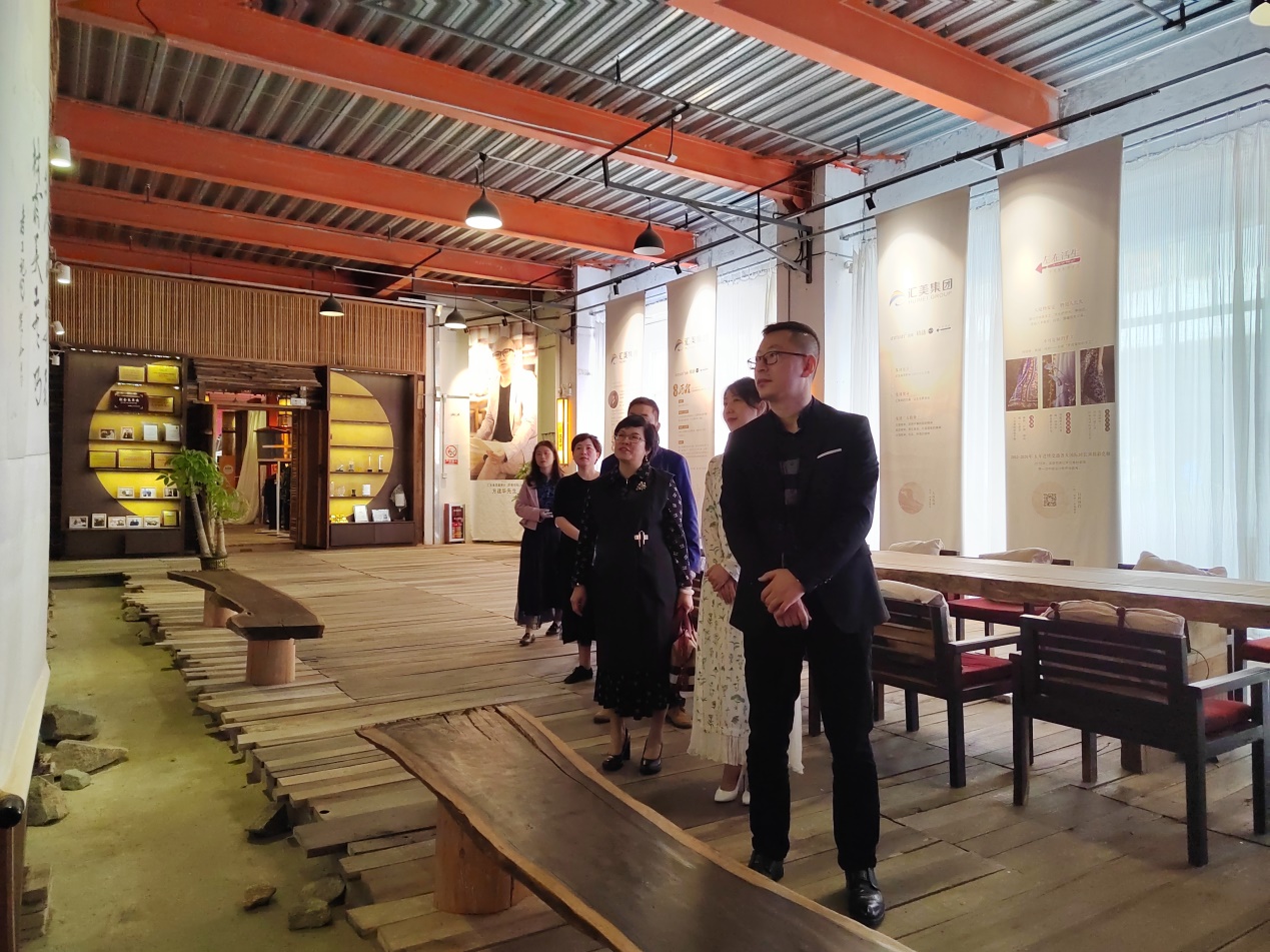 广州市生活在左服饰有限公司是汇美时尚集团的子公司,汇美时尚集团副总裁曲晶对陆志丹主任一行表示欢迎,在曲晶副总裁和企业相关领导的陪同下,陆志丹主任一行参观了广州市生活在左服饰有限公司的真如堂博物馆、蓝印花布博物馆、传统刺绣编织研究工坊、蓝染工坊、叁月馆(展厅)等。曲晶副总裁介绍道,“生活在左”是广州市汇美时尚集团股份有限公司旗下服装品牌,创立于2014年。“生活在左”是一个真诚的设计师品牌,为当代独立女性提供一个美的生活空间,用创意、真诚、纯粹勾勒不可复制的手工,还原生活的本质和内心的真实状态,提倡“随心生活”的生活态度。陆志丹主任表示,通过参观和交流,开了眼界涨了知识,汇美集团让传统与现代、非遗与时尚相结合的非遗活化传承模式是非常值得学习和借鉴的,也是传统手工艺传承与发展的趋势和潮流。广州市生活在左服饰有限公司在人才招聘、培训体系等方面非常完善,希望与公司在校园招聘、学生培养、产教融合、科研项目等方面深入推进合作。