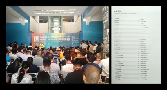 2019年10月15日上午,由广东省教育厅、广东省美术家协会主办的“第二届粤港澳大湾区学校美术与设计作品展暨第四届广东省高校设计作品学院奖双年展”开幕仪式在广州美术学院美术馆隆重举行。我院副院长乔丽媛、美术设计系主任陈岫岚等一行6人参加开幕仪式。