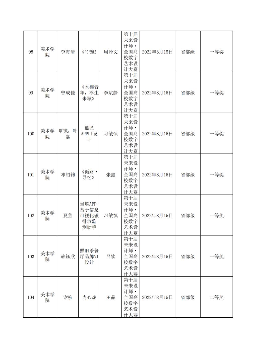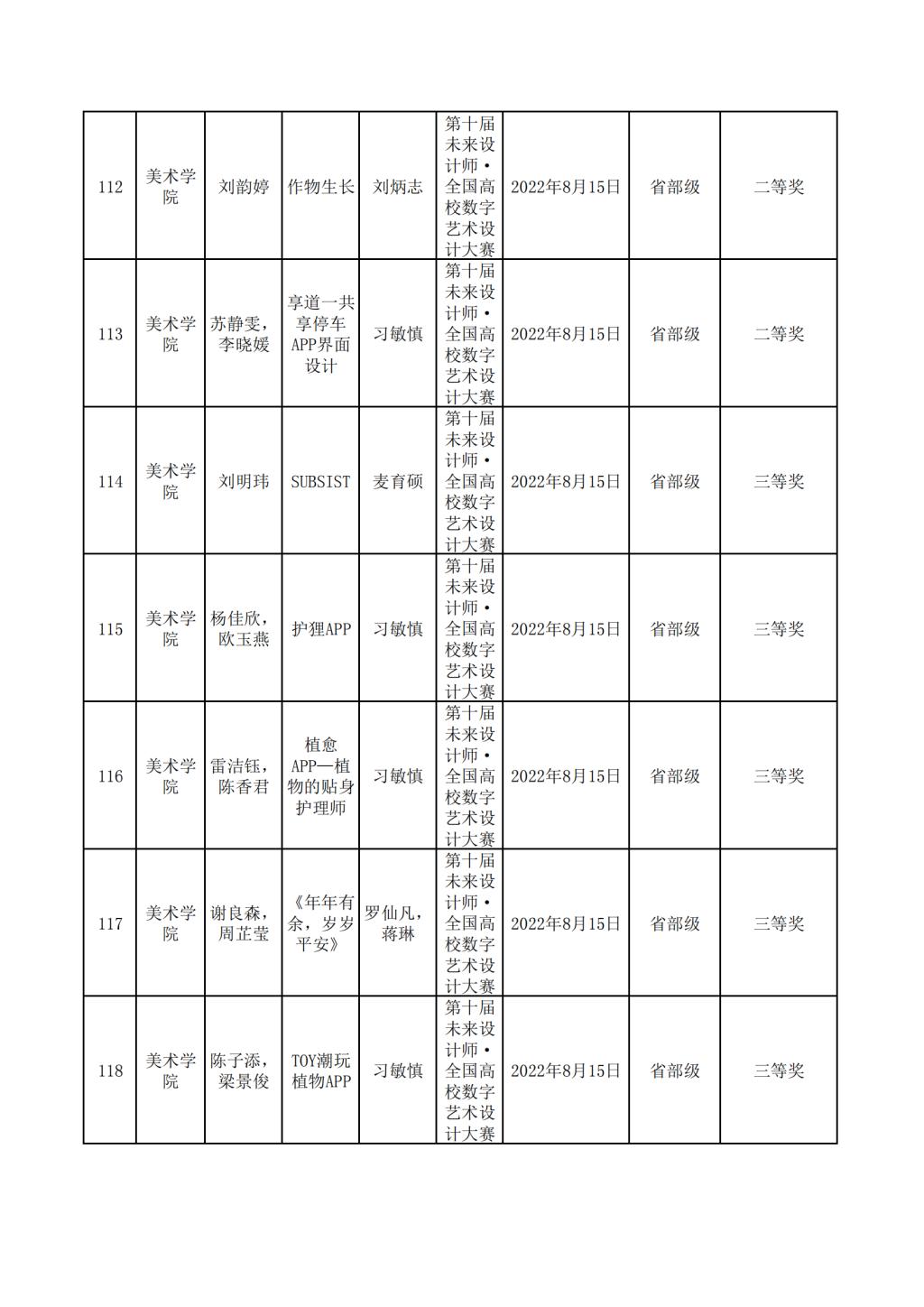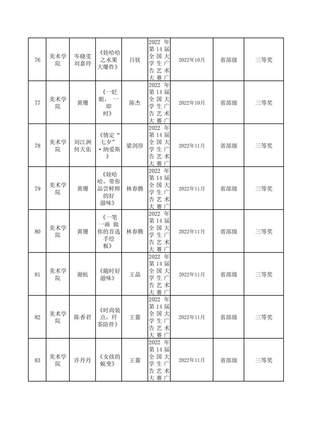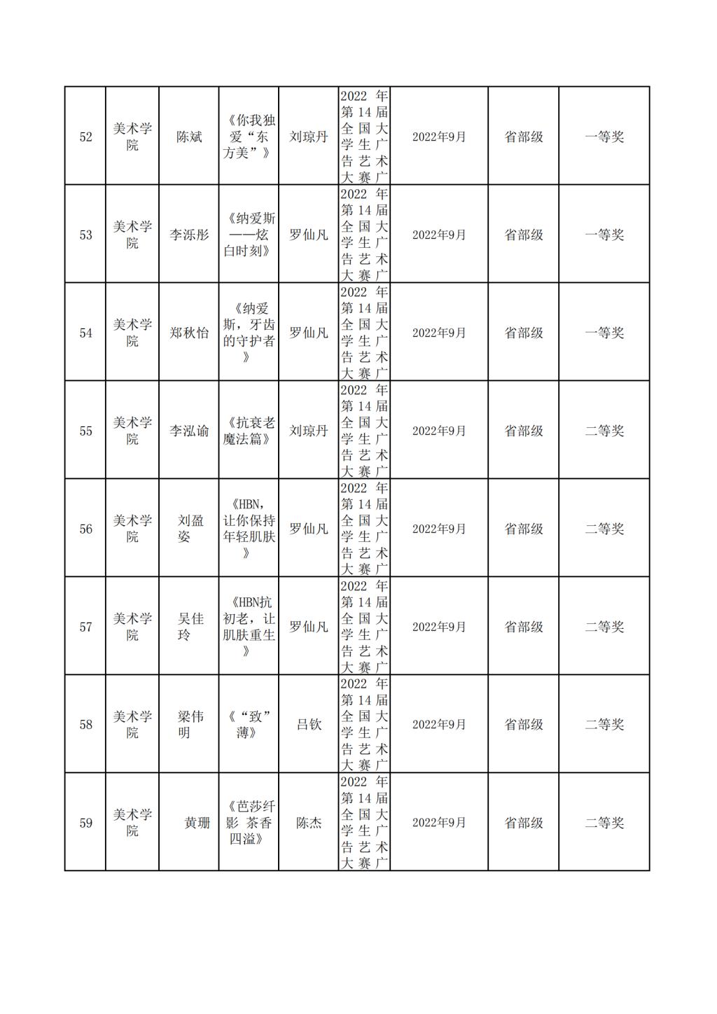 2022年美术学院学生参与各类省级文化艺术比赛获奖情况