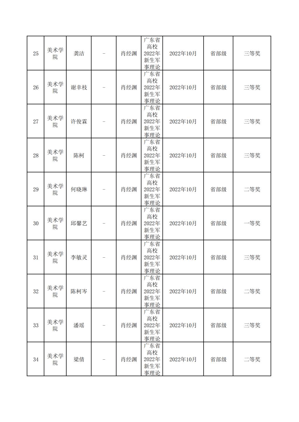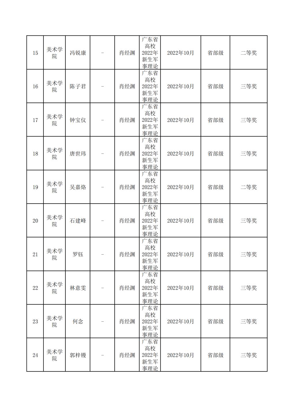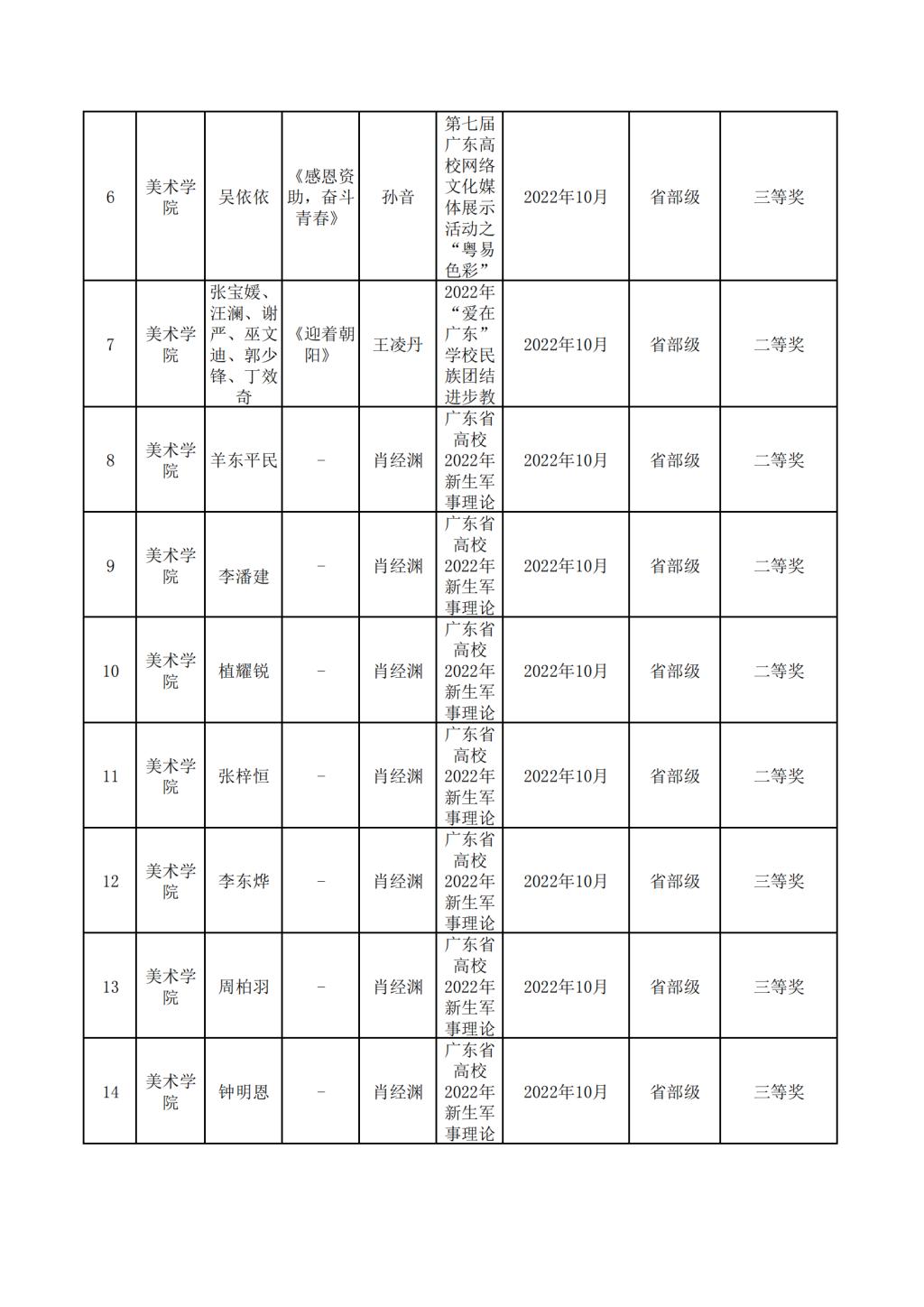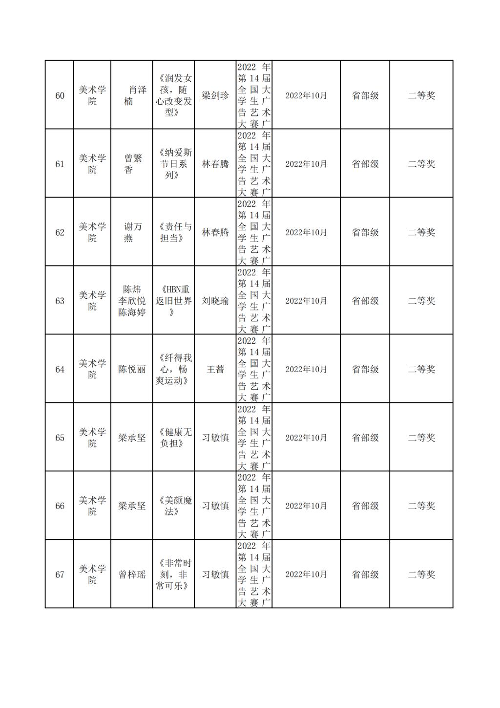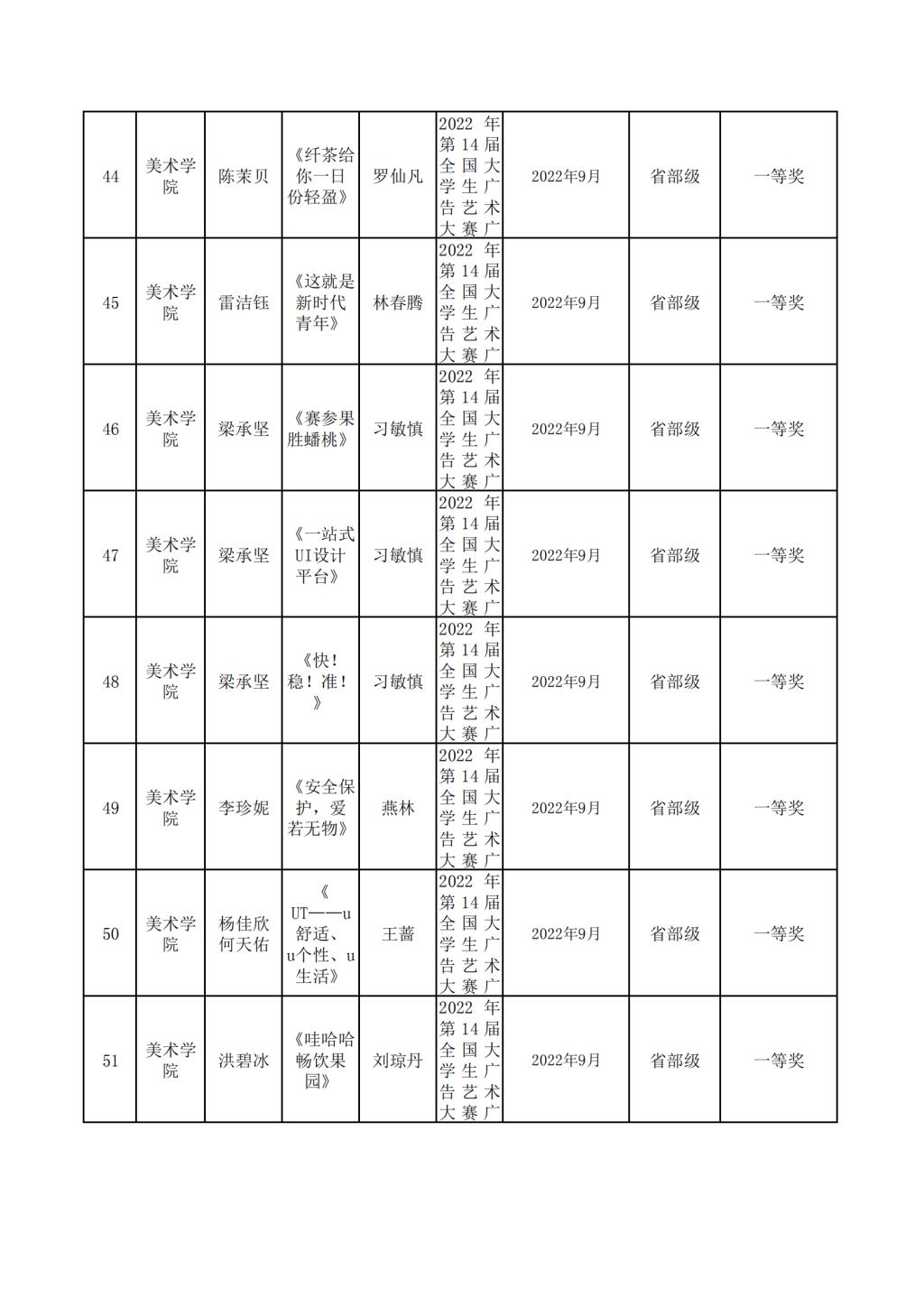 2022年美术学院学生参与各类省级文化艺术比赛获奖情况
