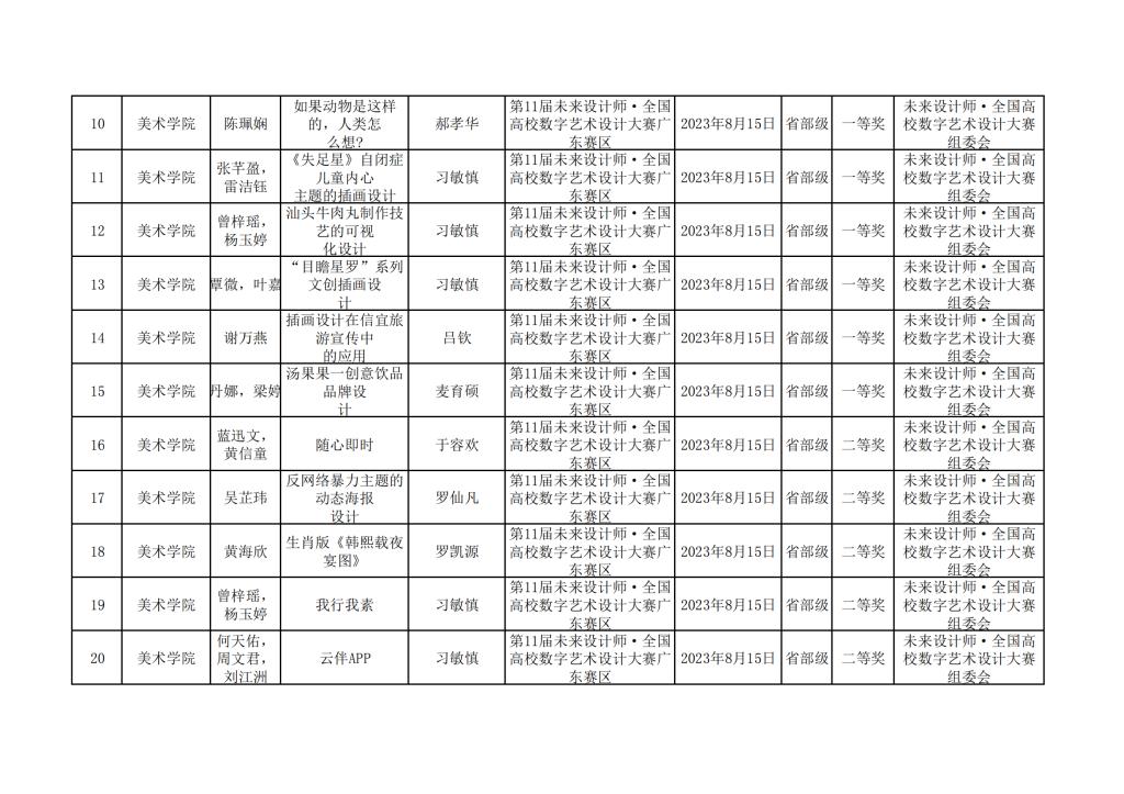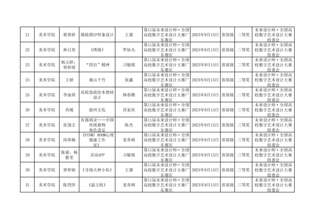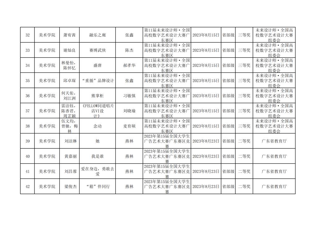 2023年美术学院学生参与各类省级文化艺术比赛获奖情况