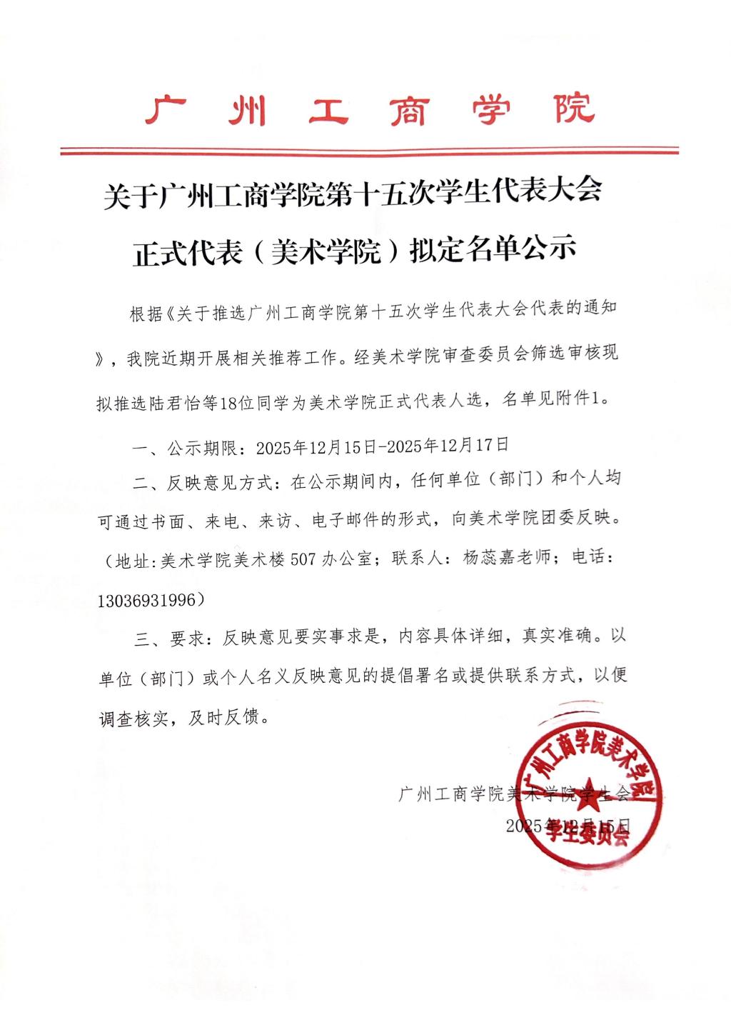 关于kaiyun开云官方网站第十五次学生代表大会正式代表(美术学院)拟定名单公示